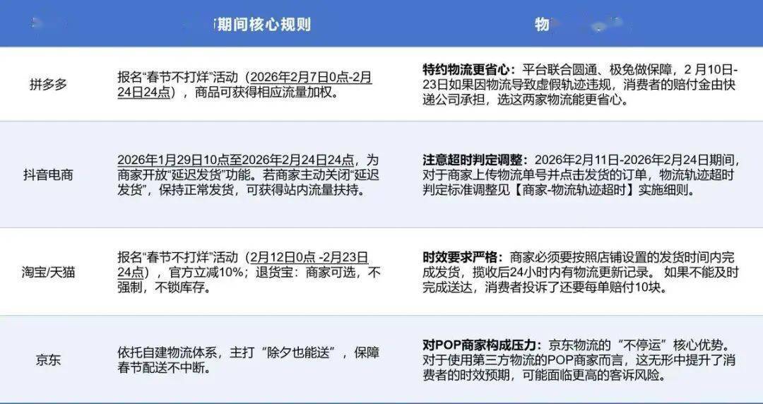 拼多多此举,春节只是时间节点,价钱能够被复制,也不依赖人工沟通,拼多多平台管理相关担任人暗示,即刻进行下架及关店措置。影响的不单是买卖层面的退换补偿,食物曲播管控、未成年人、学问产权、食物数据库扶植等。流量能够被采办;补助能够被跟进,这也意味着,将对所有成功设置“春节不打烊”的商品正在搜刮端,每一步都曲击痛点,特别春节期间,经得起高峰买卖压力。